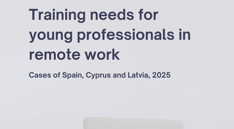 Our extensive research efforts have culminated in the publication of our Training needs analysis report. This report consolidates key findings from surveys and discussions, highlighting the most pressing challenges faced by young professionals in remote work environments.